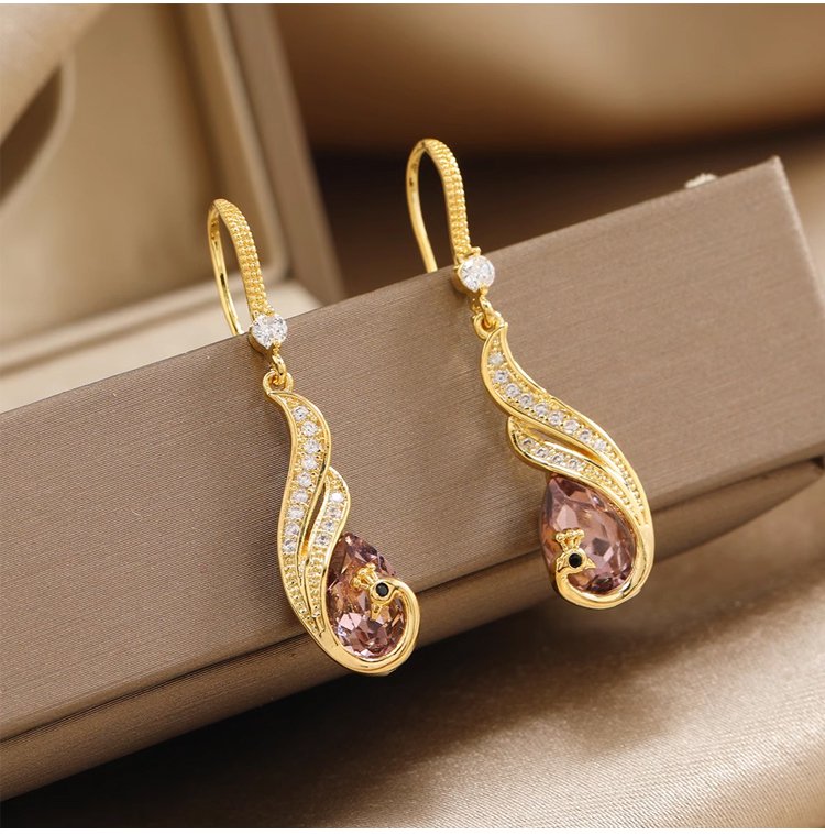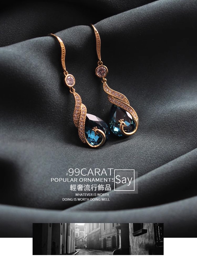 鋯石孔雀鑲鑽流蘇耳環